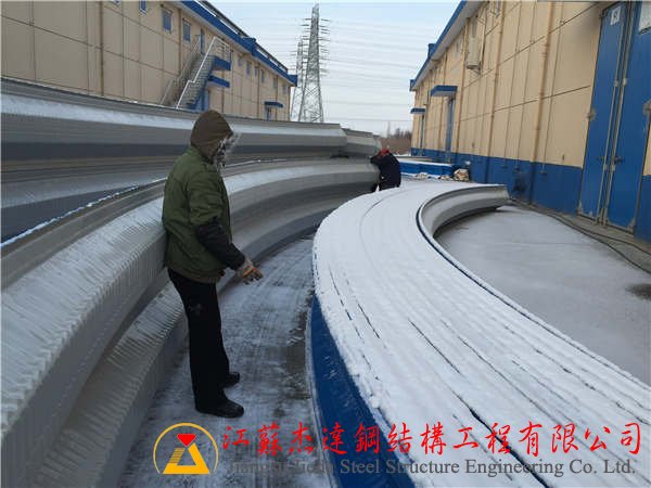 2024年,江蘇杰達鋼結構工程有限公司成功承接并完成青島某化工企業倉庫屋頂的拱形屋蓋更換工程,施工質量與效率獲得業主一致認可。工程名稱:青島紅星化工廠倉庫屋頂更...